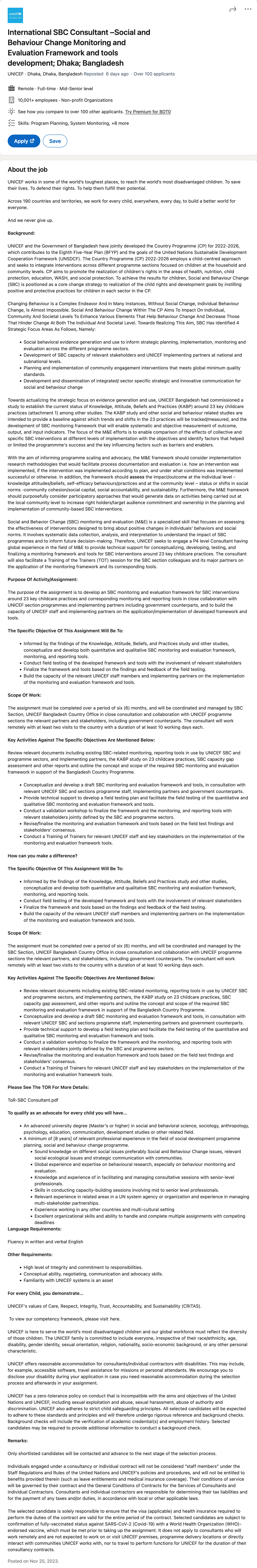 UNICEF Job Circular 2023Application link is somewhere below the post. UNICEF Job Circular 2023 has been published by the authority. It’s a great opportunity for unemployed people who are seeking an NGO job circular in Bangladesh. UNICEF is one of the most valuable NGO of the world. To get job chances in UNICEF, you have to read the circular properly & also have to apply within the deadline. UNICEF is giving some exciting career opportunities for unemployed people of Bangladesh.